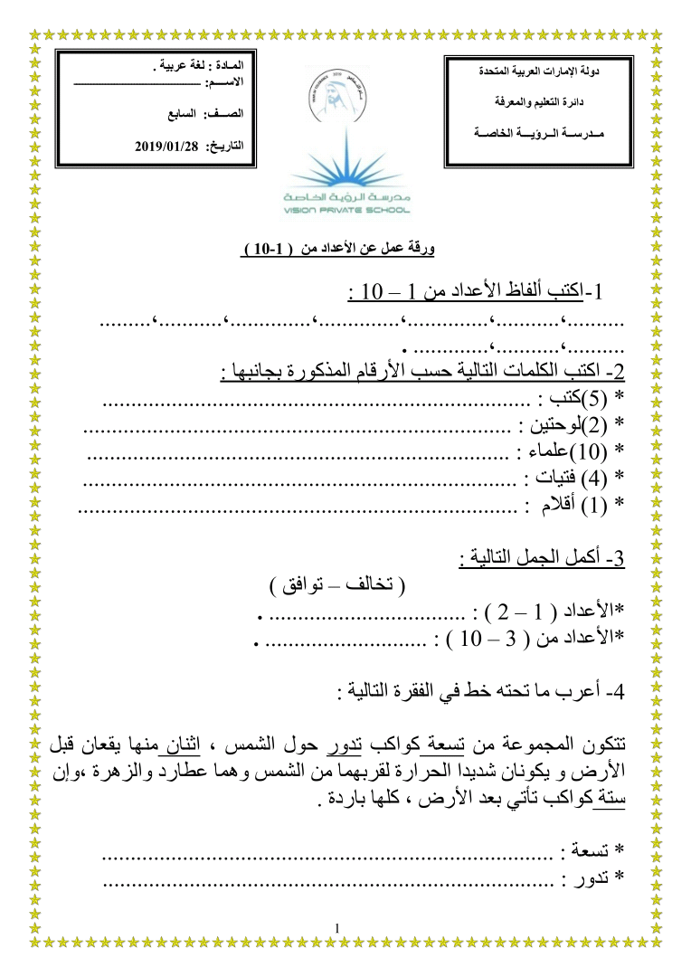 مدونة تعلم ورقة عمل درس العدد والمعدود في اللغة العربية الصف السابع الفصل الثاني