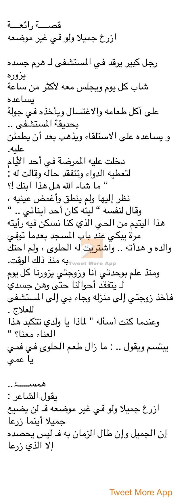التوكل On Twitter قصــــة رائعــــة ازرع جميلا ولو في غير موضعه رجل كبير يرقد في المستشفى لـ هرم جسده يزوره شاب كل
