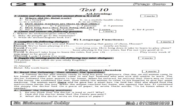 25 امتحان انجليزي للصف الثالث الابتدائي 2018 ترم اول اعداد الاستاذ علي الهاروني
