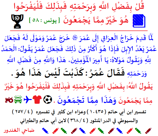 ق ل ب ف ض ل الل ه و ب ر ح م ت ه ف ب ذ ل ك ف ل ي ف ر ح وا ه و خ ي ر م م ا ي ج م ع ون تفسير ابن كثير يونس 58